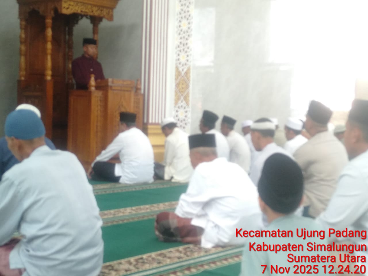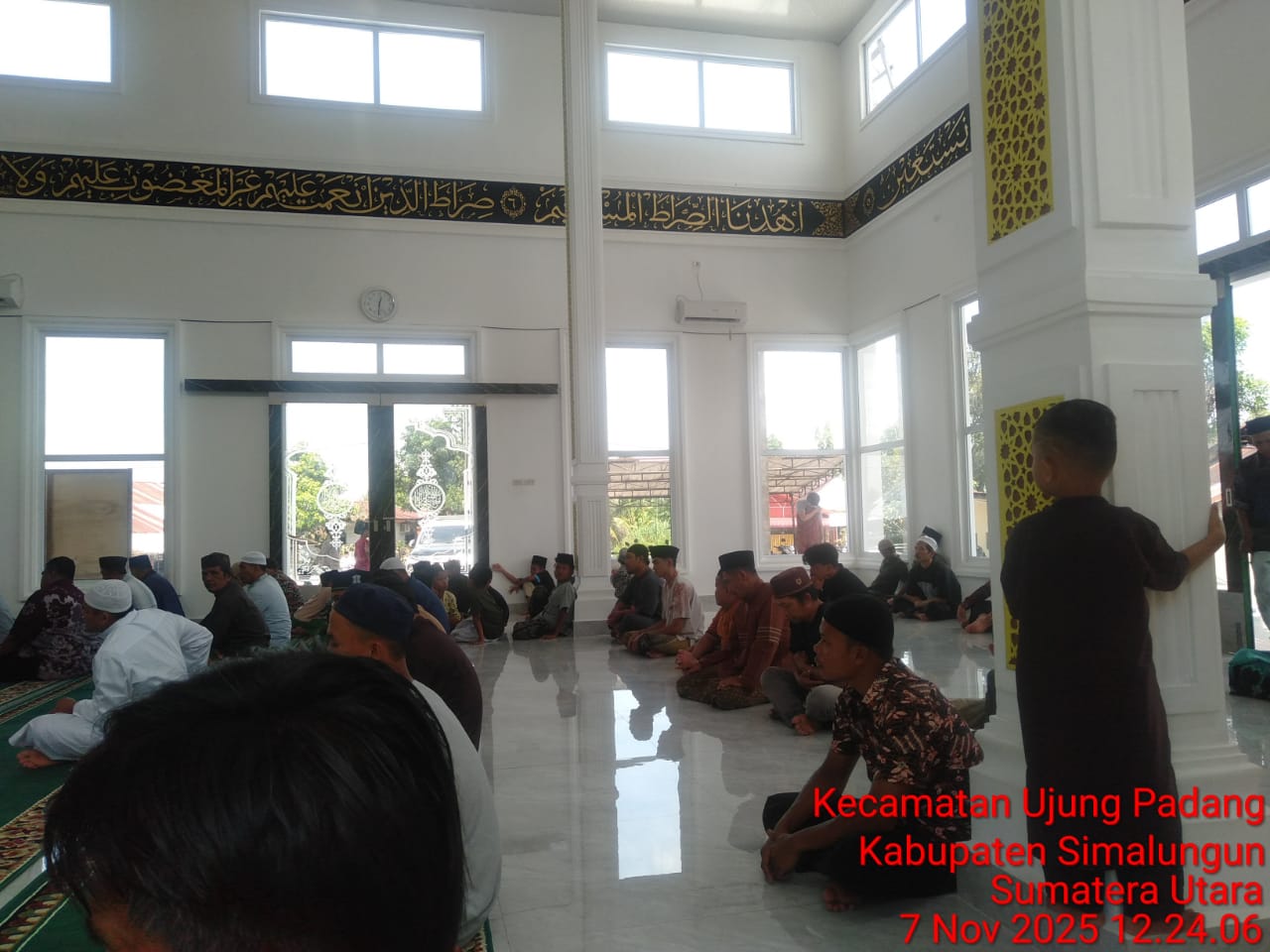 SIMALUNGUN – Bhabinkamtibmas Polsek Bosar Maligas, Aipda Surya Atmaja, menggelar pengamanan sekaligus melaksanakan salat Jumat berjamaah di Masjid Jami’, Lingkungan I, Kelurahan Ujung Padang, Kecamatan Ujung Padang, Jumat (7/11/2025) pukul 12.15 WIB.